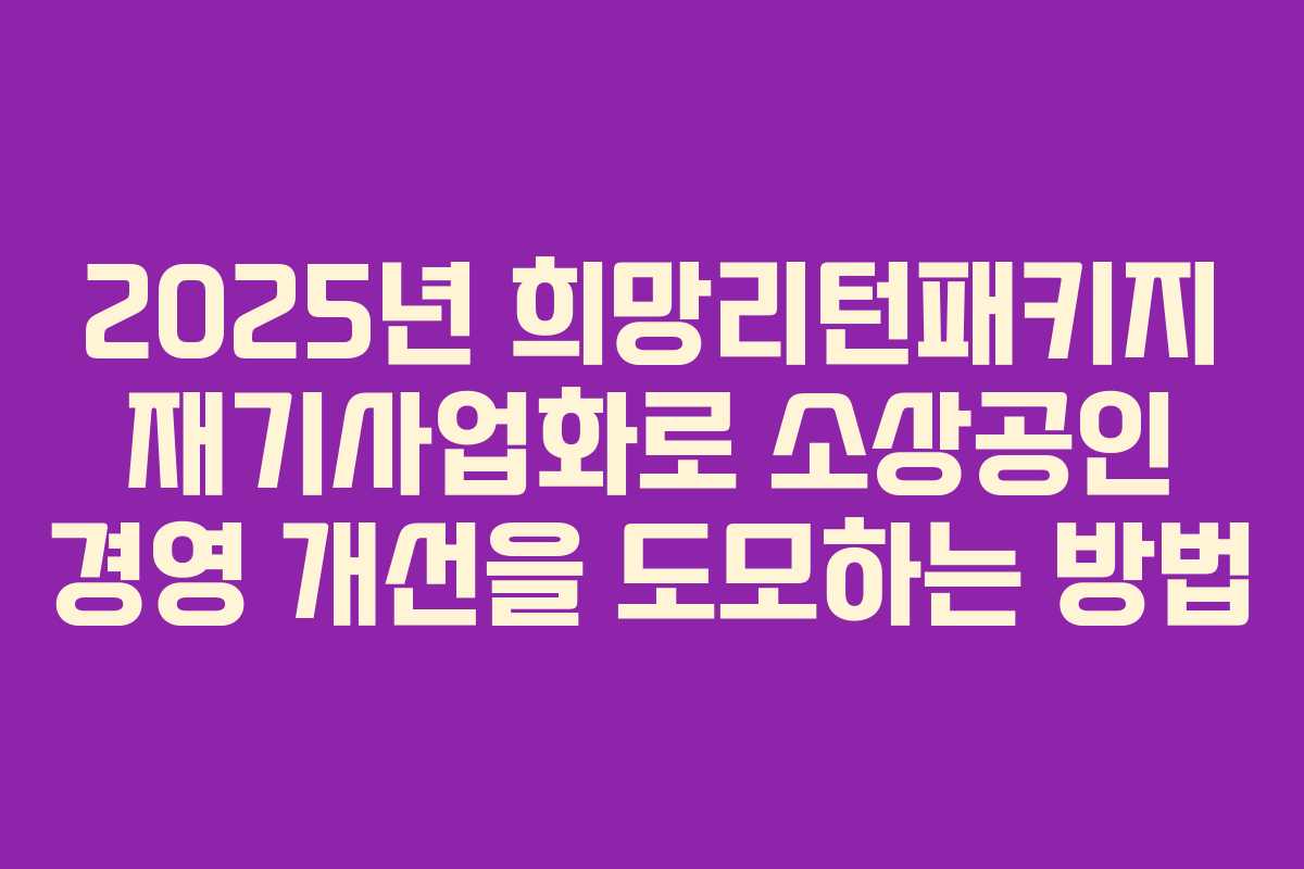2025년 희망리턴패키지 재기사업화로 소상공인 경영 개선을 도모하는 방법