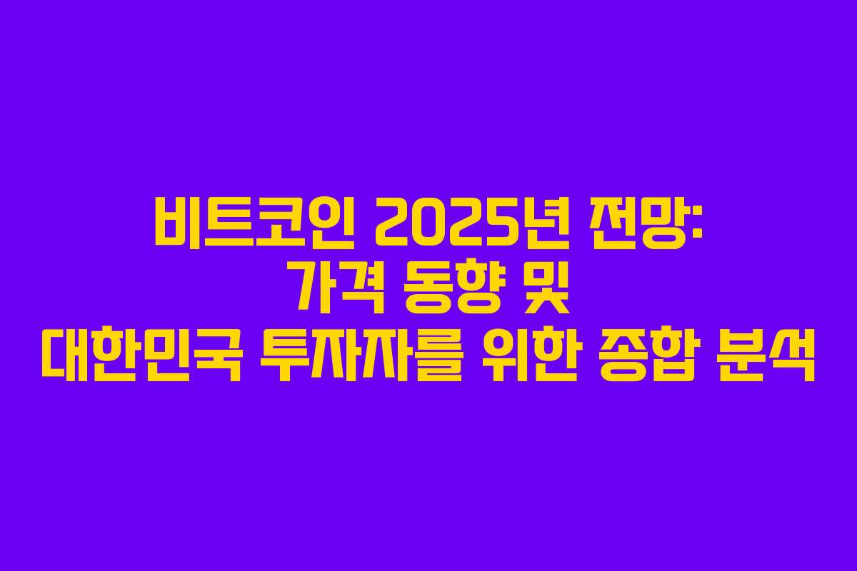 비트코인 2025년 전망: 가격 동향 및 대한민국 투자자를 위한 종합 분석