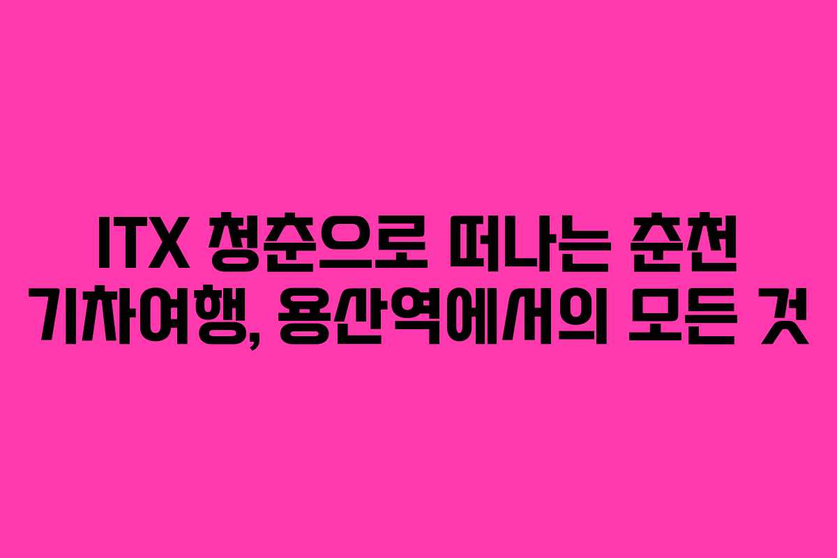 여행을 떠나는 순간은 언제나 설레는 법입니다. 특히 서울 용산역에서 ITX 청춘을 타고 강원도 춘천으로 향하는 기차여행은 특별한 경험으로 남습니다. 이 글에서는 용산역에서 ITX 청춘열차를 예약하고 탑승하는 방법, 그리고 기차 내부의 매력을 살펴보겠습니다. 2021년 기준으로 안내하니, 참고하시기 바랍니다.