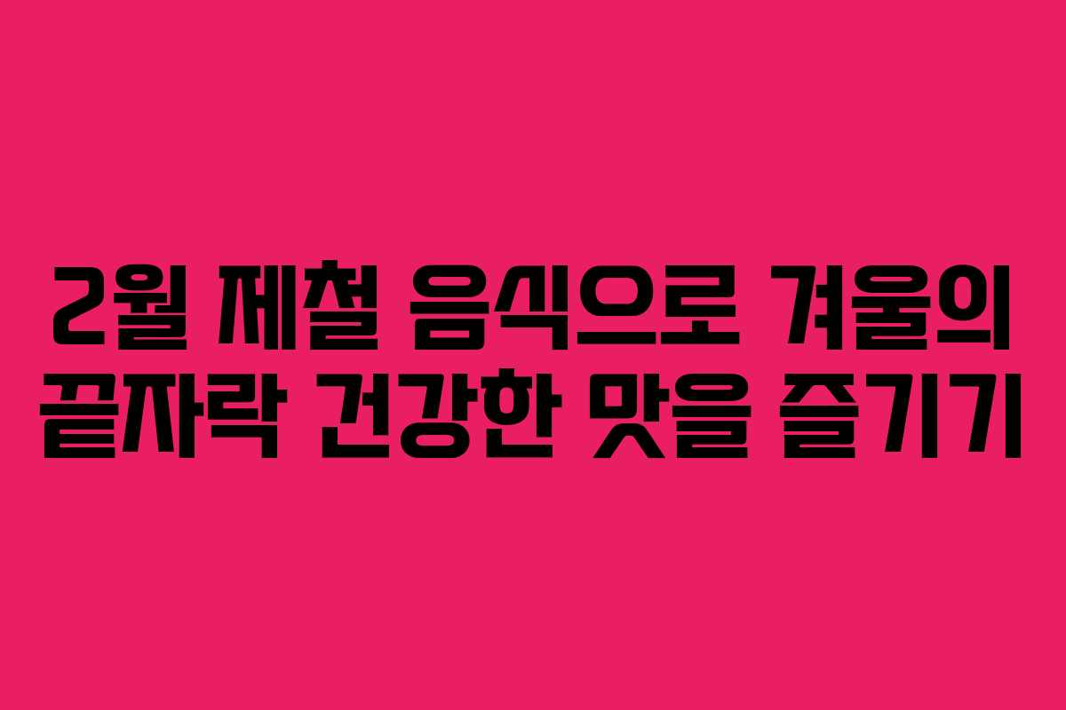 2월은 겨울의 마무리 시점으로, 다양한 제철 음식이 우리의 식탁을 풍성하게 만들어 줍니다. 이 시기에 수확되는 재료들은 신선하고 영양가가 뛰어나며, 겨울철 건강 유지를 돕는 데 큰 역할을 합니다. 특히 한국에서 2월에 수확되는 음식들은 독특한 맛과 향이 있어 요리에 활용하기 좋습니다. 이번 글에서는 2월에 즐길 수 있는 다양한 제철 음식들에 대해 알아보겠습니다.