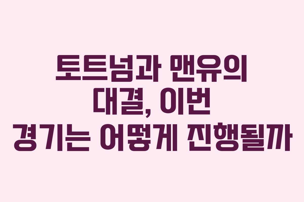 토트넘과 맨유의 경기는 항상 많은 이들의 관심을 모은다. 두 팀의 치열한 경쟁과 선수들의 뛰어난 기량이 조화를 이루어 어떤 결과가 나올지 기대된다. 이번 경기가 끝난 후 두 팀의 순위와 향후 일정에도 큰 영향을 미칠 것으로 보인다. 팬들은 경기를 통해 즐거운 시간을 보내고, 선수들의 활약을 통해 많은 감동을 받을 수 있을 것이다.