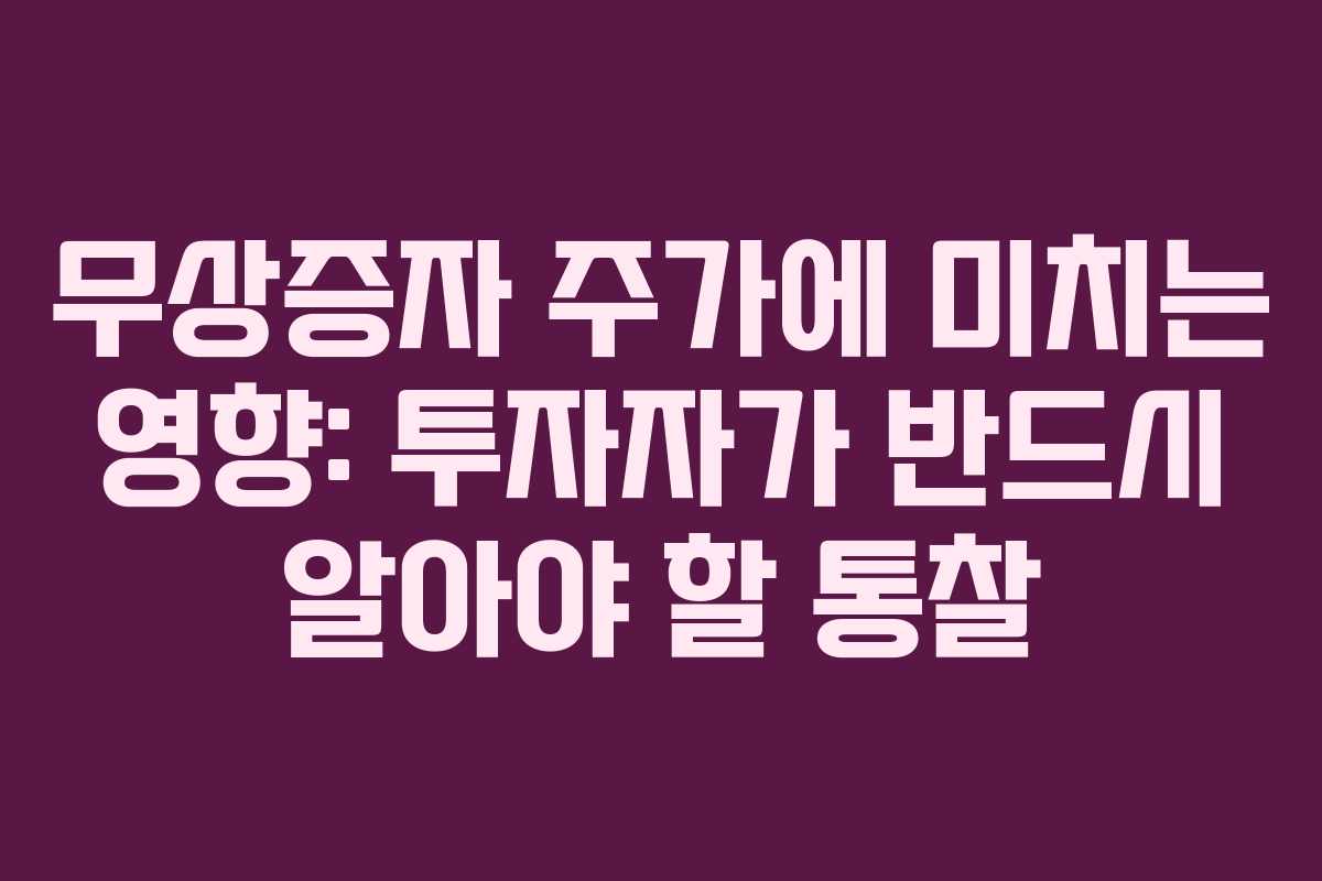 무상증자는 단순히 기업 가치 증가와는 관련이 없지만, 투자 기회를 창출할 수 있는 요소로 작용할 수 있다. 따라서 투자자는 무상증자의 배경을 면밀히 분석하고, 그에 따른 기업의 실제 가치를 평가해야 한다.
