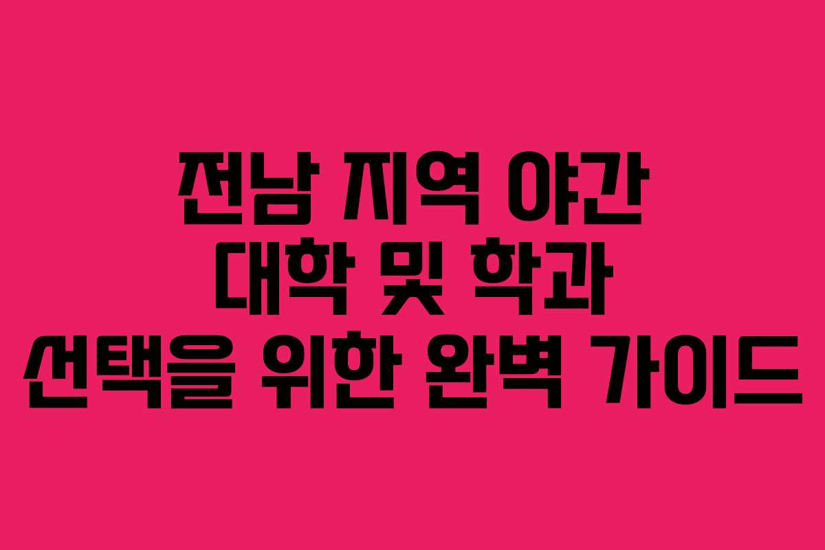 전남 지역에서 야간 대학과 학과를 찾는 것은 여러 가지 이유로 중요한 결정입니다. 특히 일과 학업을 병행하고자 하는 많은 이들에게 야간 수업은 유용한 선택이 될 수 있습니다. 이 글에서는 전남 지역의 다양한 야간 대학과 그 학과에 대한 정보를 제공하여, 적합한 선택을 할 수 있도록 도와드립니다.