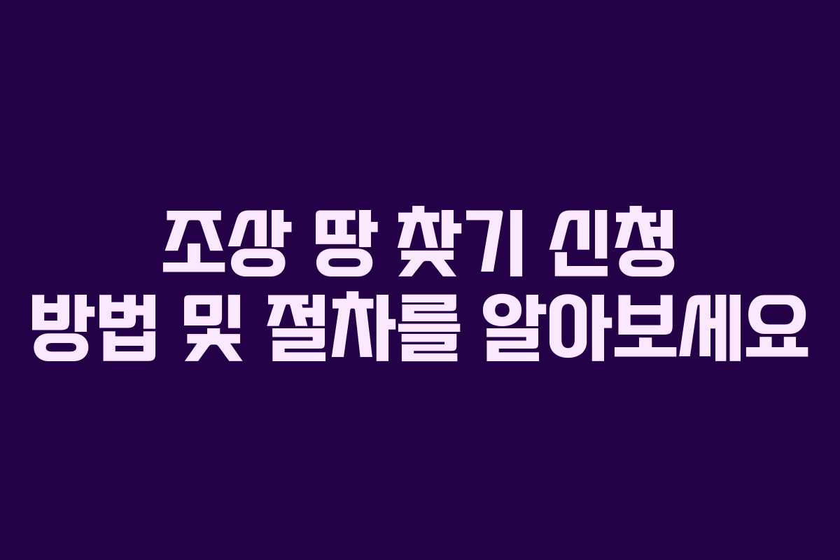 조상 땅 찾기 신청은 주민등록번호 또는 성명으로 가능하며, 관련 부서에 직접 방문하거나 온라인으로 진행할 수 있습니다. -