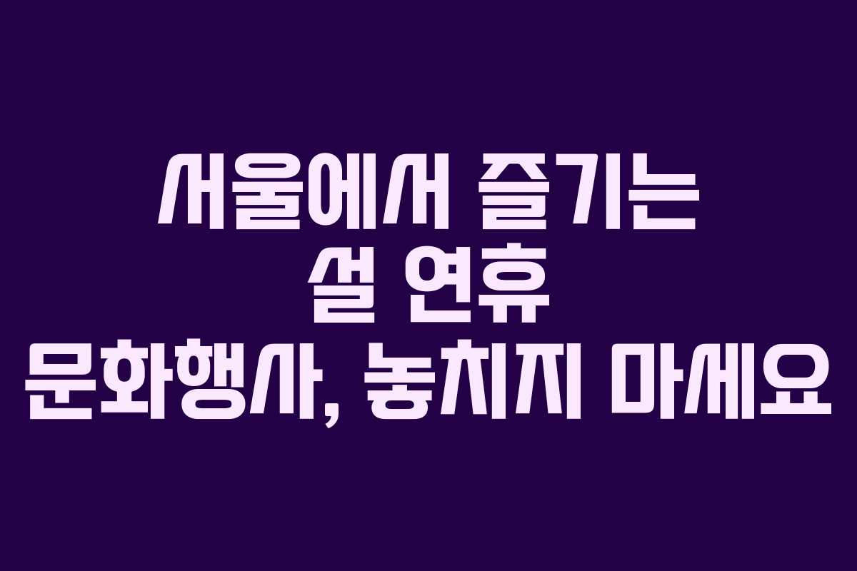 서울에서 즐기는 설 연휴 문화행사, 놓치지 마세요
