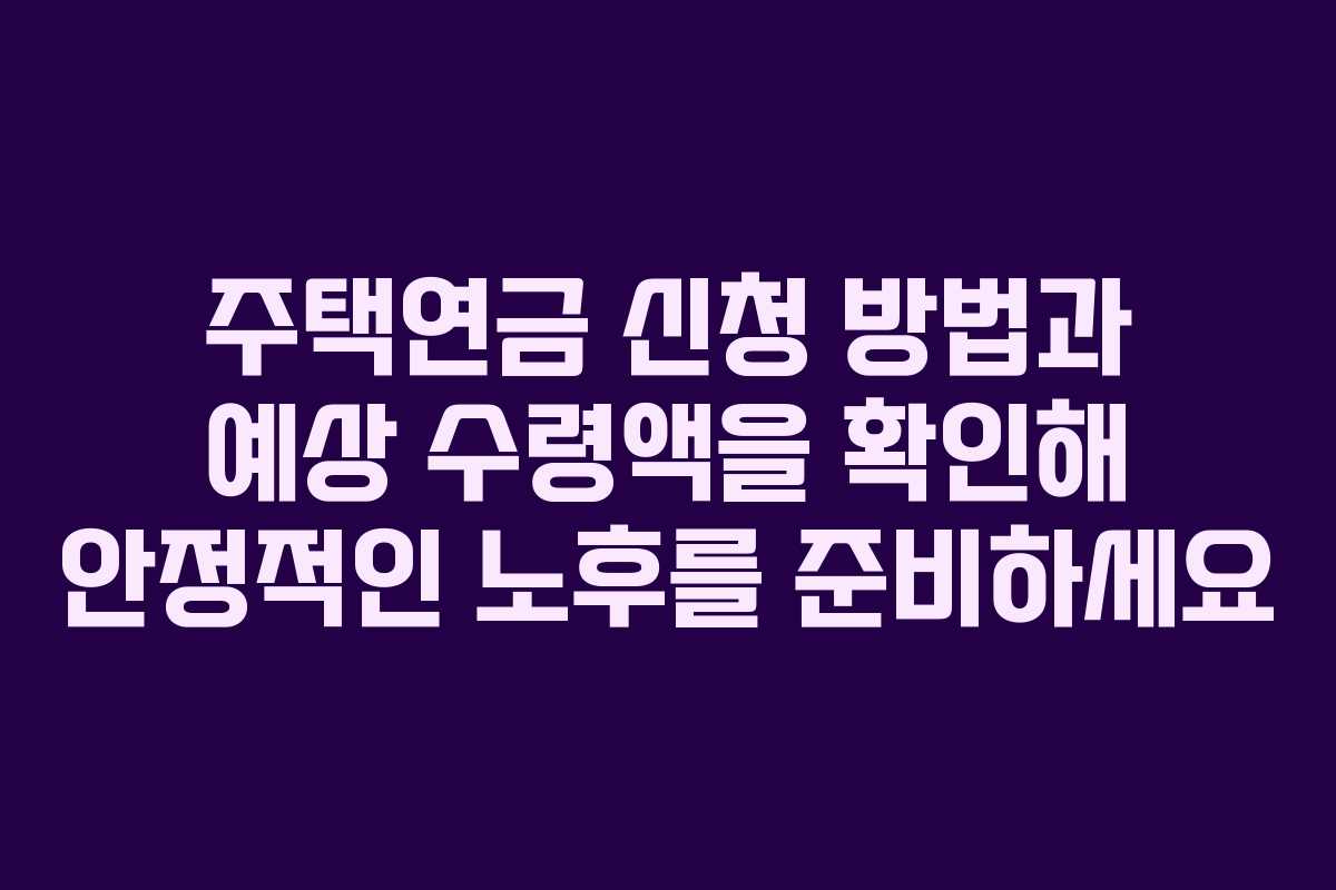주택연금 신청 방법과 예상 수령액을 확인해 안정적인 노후를 준비하세요