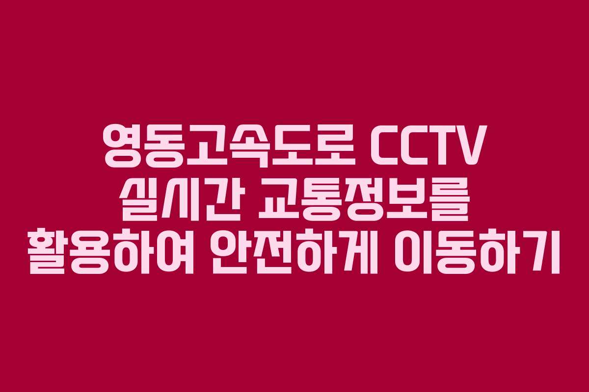 영동고속도로 CCTV 실시간 교통정보를 활용하여 안전하게 이동하기
