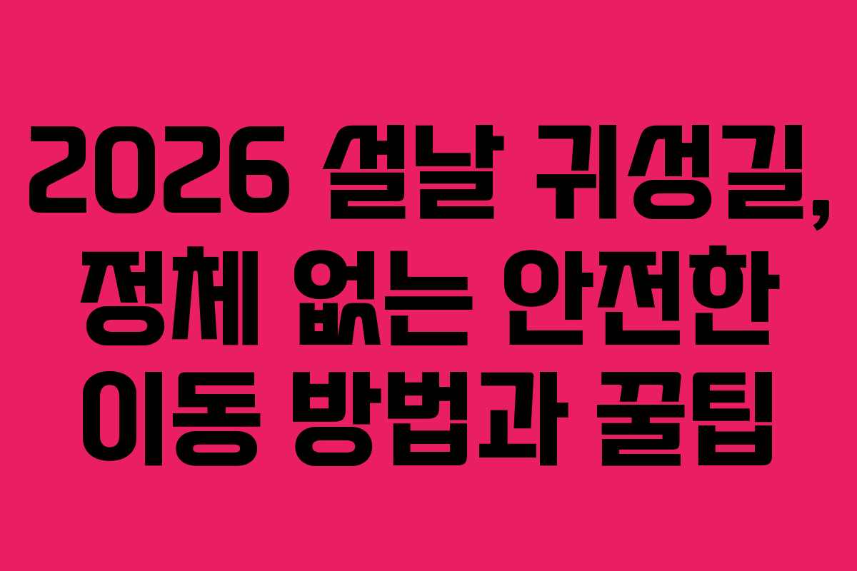 2026년 설날을 맞아 귀성길을 준비하는 이들이 많습니다. 명절 귀성길은 매년 많은 차량이 몰려 교통 체증을 피하는 것이 중요한 과제가 됩니다. 이번 글에서는 귀성길을 보다 원활하게 만들기 위한 다양한 정보와 팁을 제공하겠습니다.