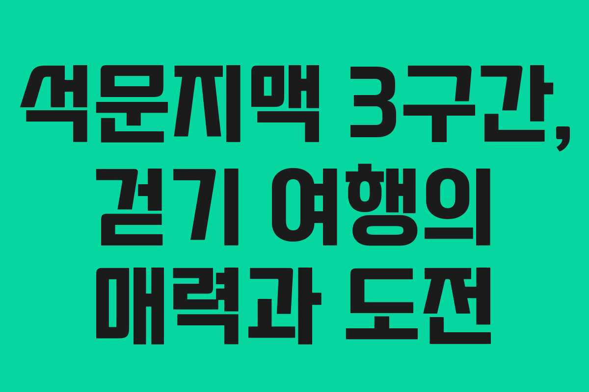 석문지맥 3구간은 자연과 산업이 어우러진 독특한 경로를 제공하며, 하이킹의 매력을 한껏 느낄 수 있는 장소이다. 다양한 경관과 특별한 경험이 가득한 이 여정은 많은 이들에게 기억에 남는 추억을 선사할 것이다. 이처럼 하이킹은 단순한 운동을 넘어, 자연과의 교감, 그리고 다양한 문화 체험을 동시에 제공하는 특별한 활동이다.