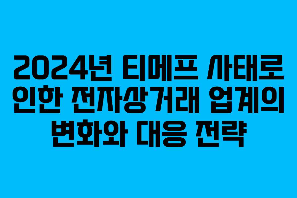 2024년 티메프 사태로 인한 전자상거래 업계의 변화와 대응 전략