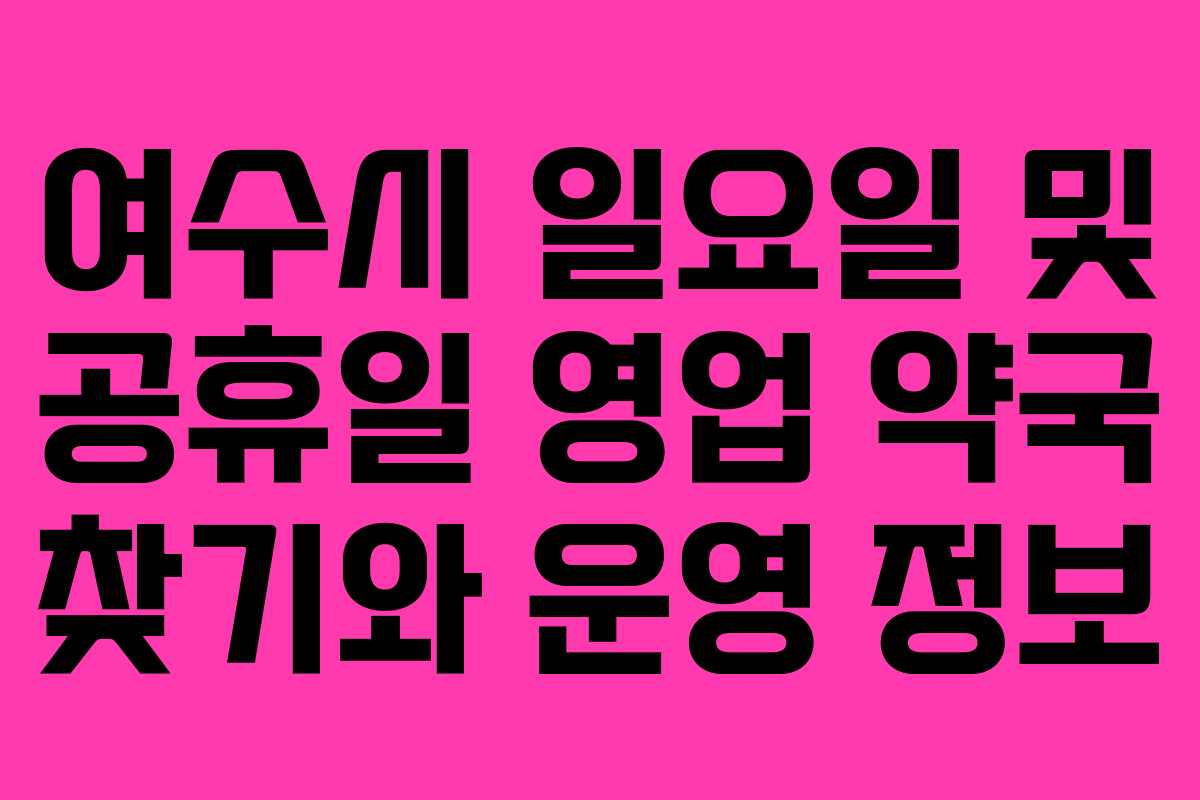 여수시에서 일요일에 영업하는 약국의 목록은 다음과 같습니다. 이 목록은 전화번호와 주소를 함께 제공하여 방문할 때 편리함을 더합니다.