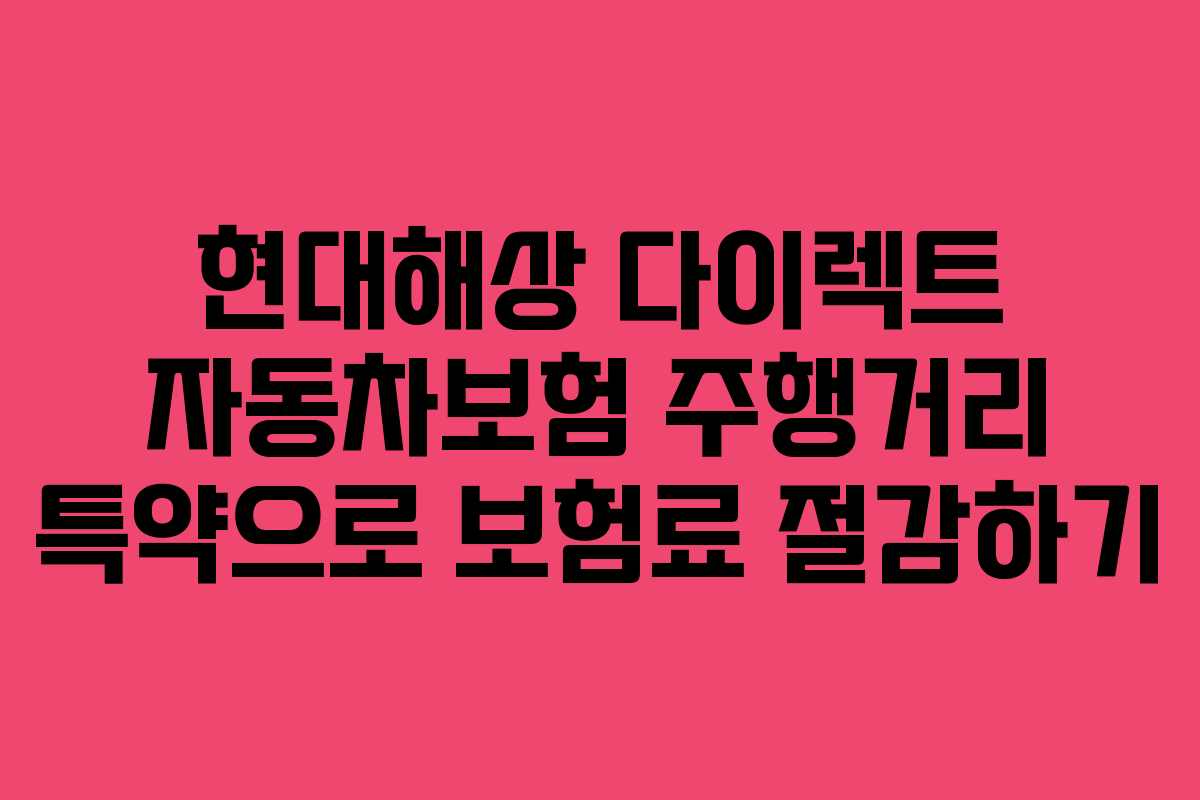 - 현대해상 다이렉트 자동차보험 주행거리 특약 개요