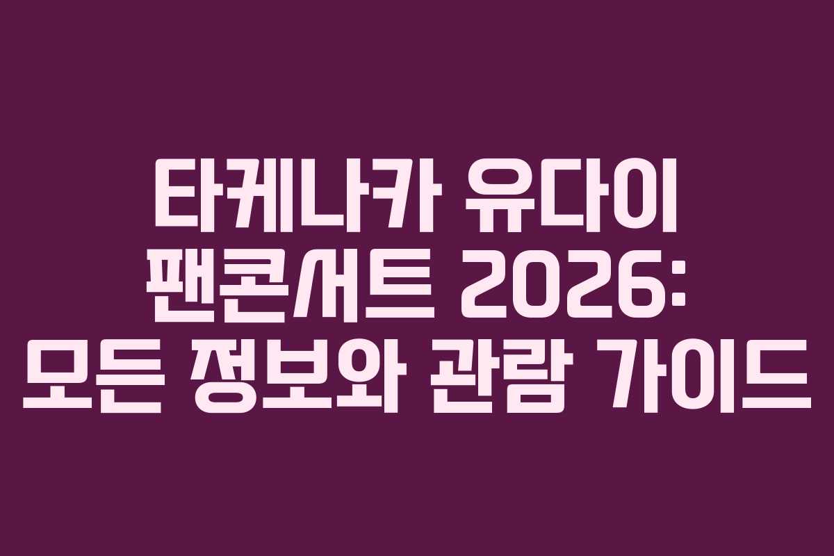 - 🤔 타케나카 유다이 팬콘서트와 관련하여 진짜 궁금한 것들 (FAQ)