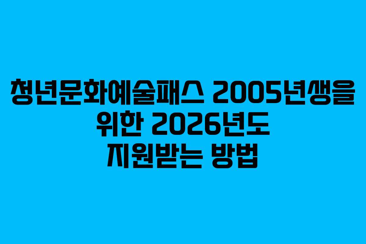 2026년 현재, 청년문화예술패스는 2005년 생 청년들에게 문화예술 관람비를 지원하는 유익한 제도입니다. 이 제도를 통해 최대 15만원까지 지원받을 수 있으며, 이는 청년들이 문화생활을 보다 풍부하게 즐길 수 있도록 돕는 중요한 기회입니다. 본 글에서는 청년문화예술패스를 신청하는 과정과 사용 방법에 대해 자세히 알아보겠습니다.