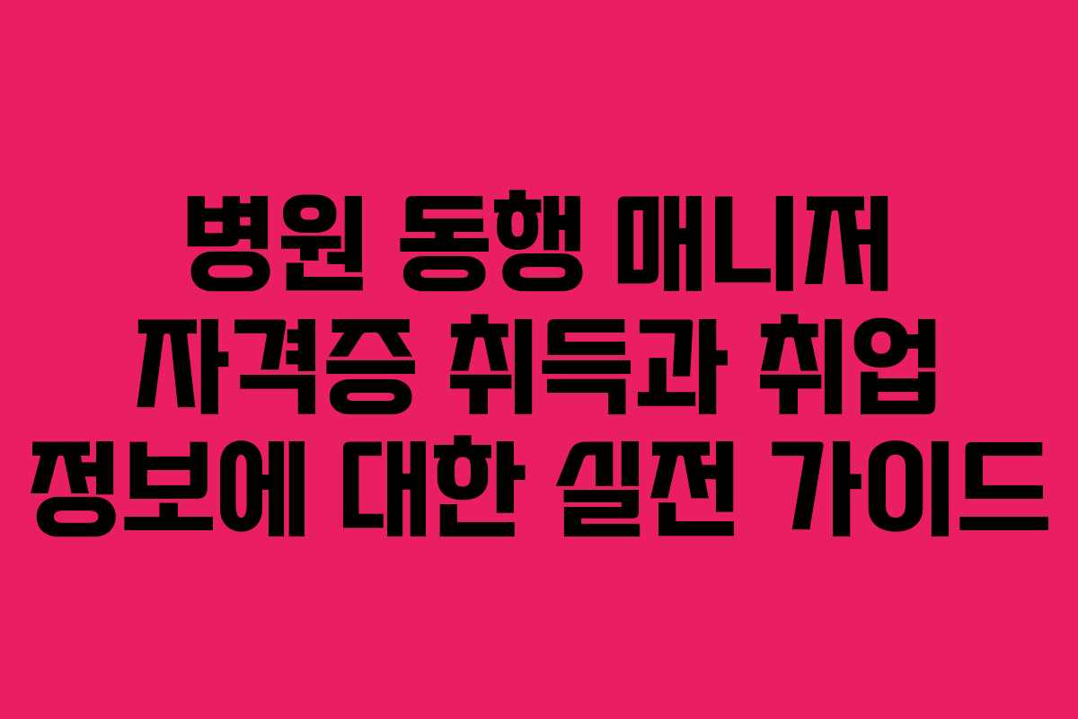 병원 동행 매니저 자격증은 초고령화 사회에 발맞춰 점차 중요성이 커지고 있습니다. 이 기회를 통해 자격증을 취득하고 새로운 직업 세계에 도전해보시기 바랍니다.