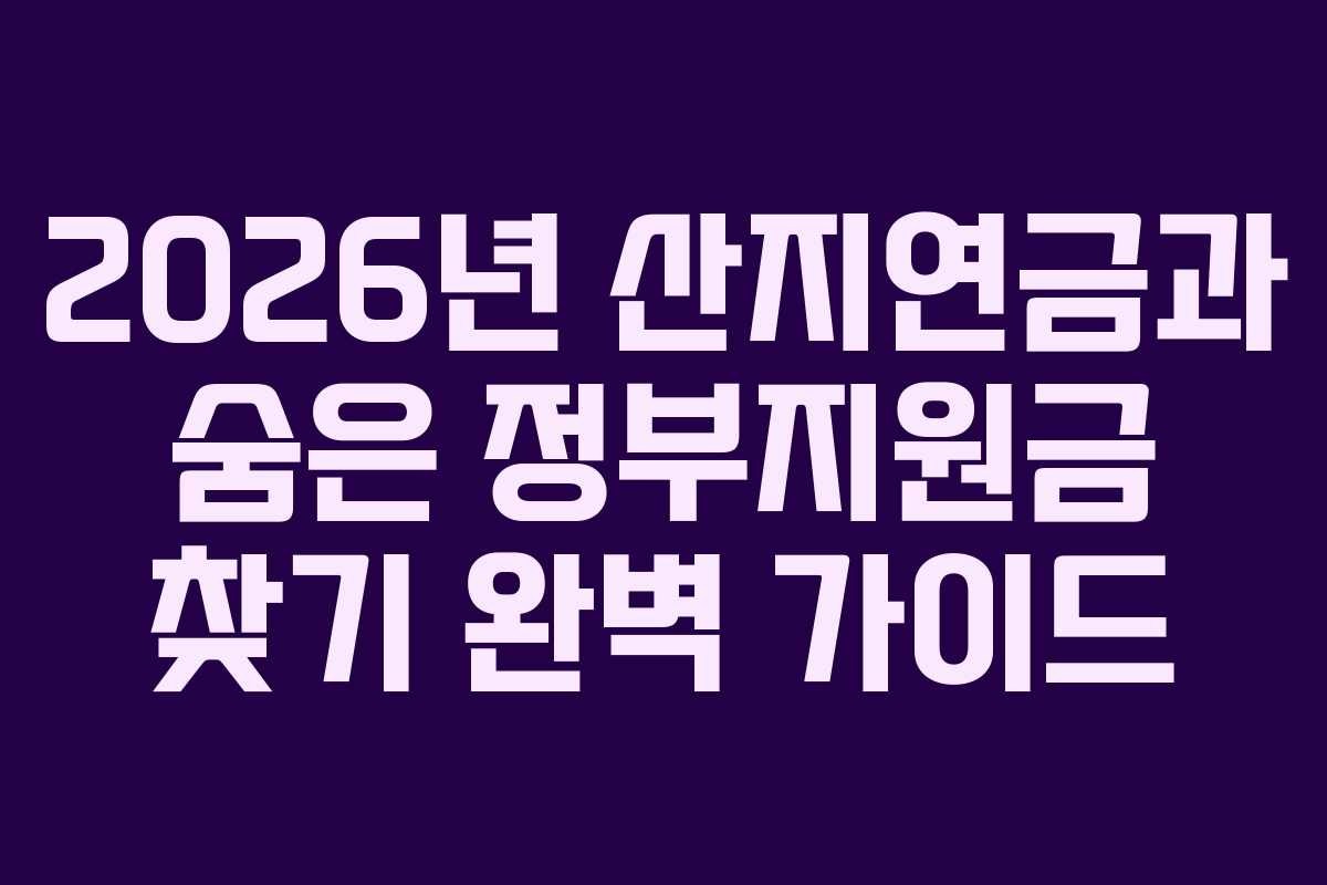 2026년을 맞아 많은 사람들이 놓치기 쉬운 정부 지원금과 혜택들을 정리했습니다. 시골 산지에서 매달 수익을 올릴 수 있는 산지연금부터, 잊고 있던 휴면예금 및 숨은 보험금까지 다양한 정보를 제공하니 꼭 확인하시기 바랍니다.