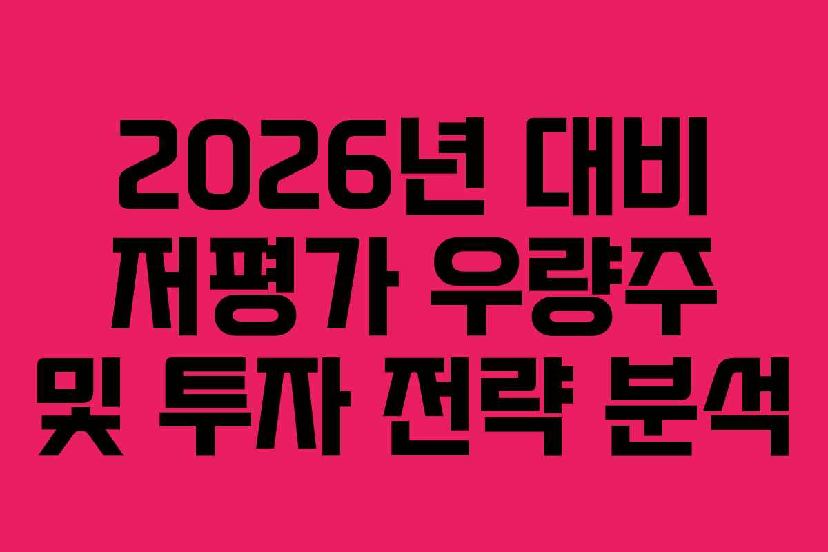 2026년의 금융 환경을 대비하는 것은 투자자들에게 중요한 과제가 되고 있습니다. 과거 몇 년간 AI와 기술주가 시장을 이끌어왔지만, 이제는 저평가된 우량주에 주목해야 할 시점에 도달했습니다. 특히, 불확실한 거시경제 상황에서는 탄탄한 현금 흐름과 배당을 제공하는 가치주가 투자자의 포트폴리오에 든든한 지지대가 될 것입니다. 이 글에서는 2026년을 대비하기 위한 저평가 우량주와 그에 따른 투자 전략을 정리해 보겠습니다.