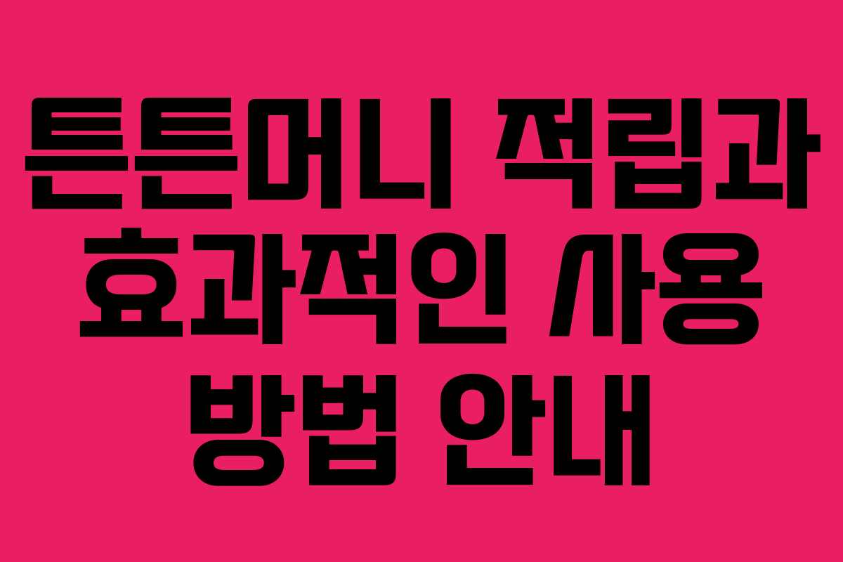 튼튼머니 적립을 위해 반드시 필요한 조건은 무엇인가