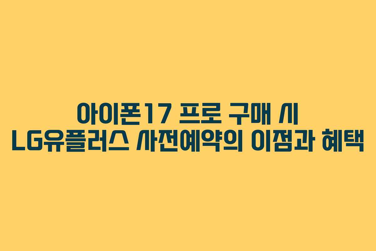 아이폰17 프로의 출시 소식이 많은 소비자들에게 기대감을 불러일으키고 있다. 특히, 새로운 디자인과 성능 향상은 많은 이들의 구매욕을 자극하고 있다. 하지만 스마트폰 구매 방식에 따라 다양한 혜택이나 불편함이 발생할 수 있다. 이번 글에서는 LG유플러스의 사전예약과 관련된 혜택과, 자급제 및 알뜰폰 조합의 단점을 비교하여 어떤 선택이 가장 합리적인지 살펴보도록 하겠다.