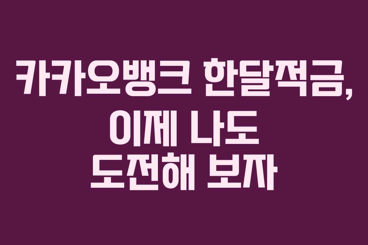 카카오뱅크의 한달적금은 저축을 통해 빠르게 자산을 늘릴 수 있는 좋은 기회를 제공합니다. 2026년 기준으로 이자율이 8%로 설정되어 있는 이 상품은 짧은 기간 동안 유연하게 돈을 관리할 수 있는 장점을 지니고 있습니다. 이 글에서는 한달적금의 자세한 내용과 실제 체험 후기를 공유하며, 이 상품이 제공하는 다양한 혜택을 살펴보도록 하겠습니다.