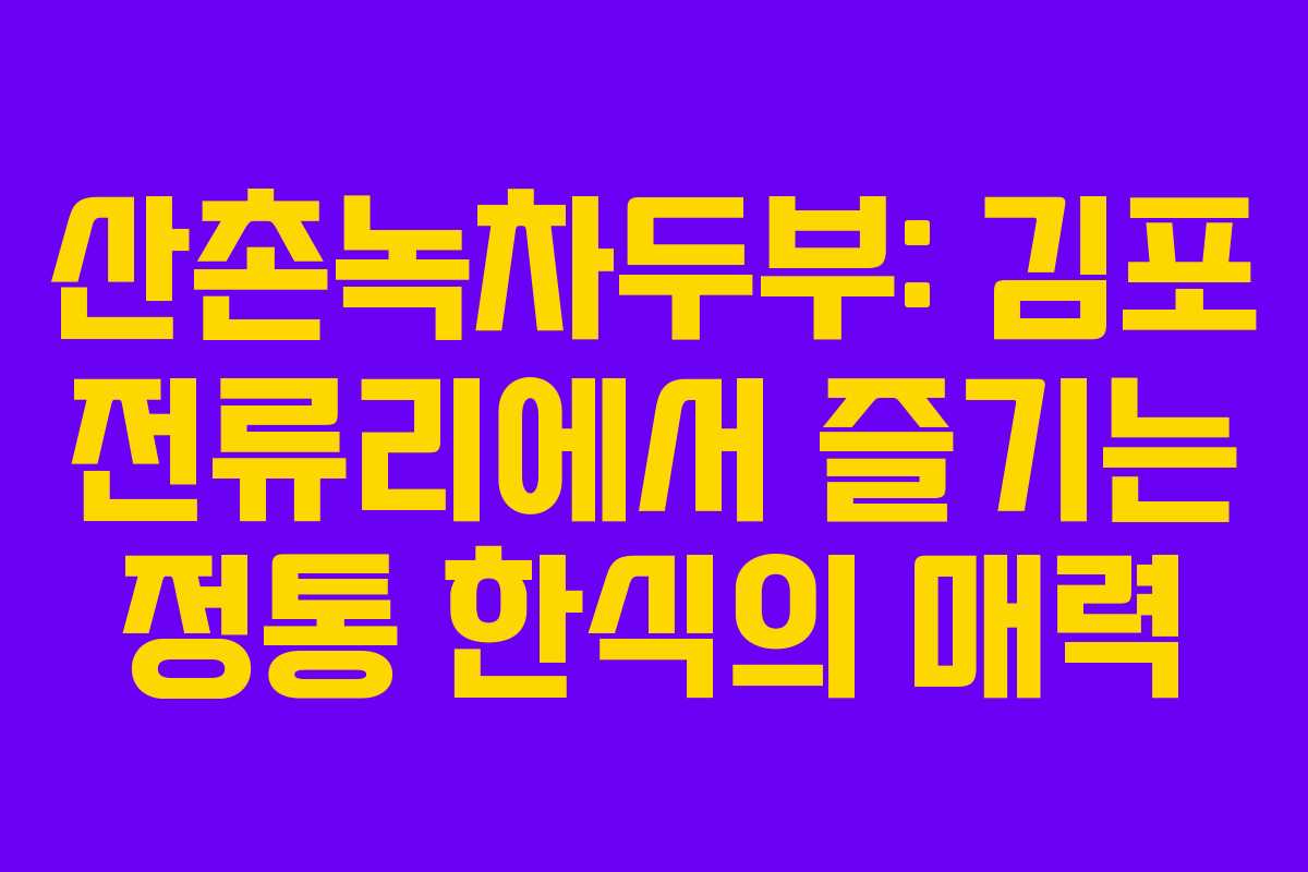 산촌녹차두부는 김포 전류리에서 전통 한식의 진수를 느낄 수 있는 맛집입니다. 신선한 재료와 정성 가득한 요리로 가득한 이곳에서, 특별한 식사 경험을 쌓아보시길 바랍니다. 한 번의 방문으로도 이곳의 매력에 빠질 수 있을 것입니다.