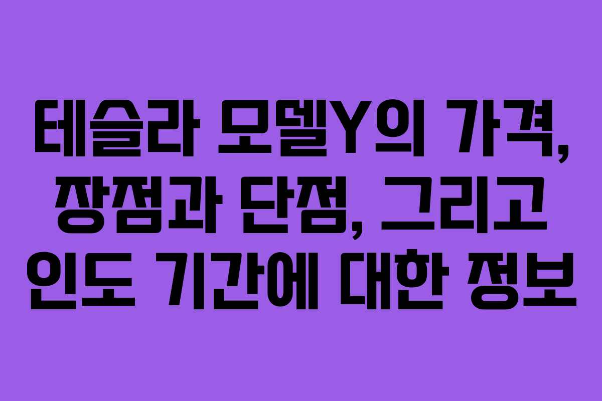 테슬라 모델Y의 가격, 장점과 단점, 그리고 인도 기간에 대한 정보