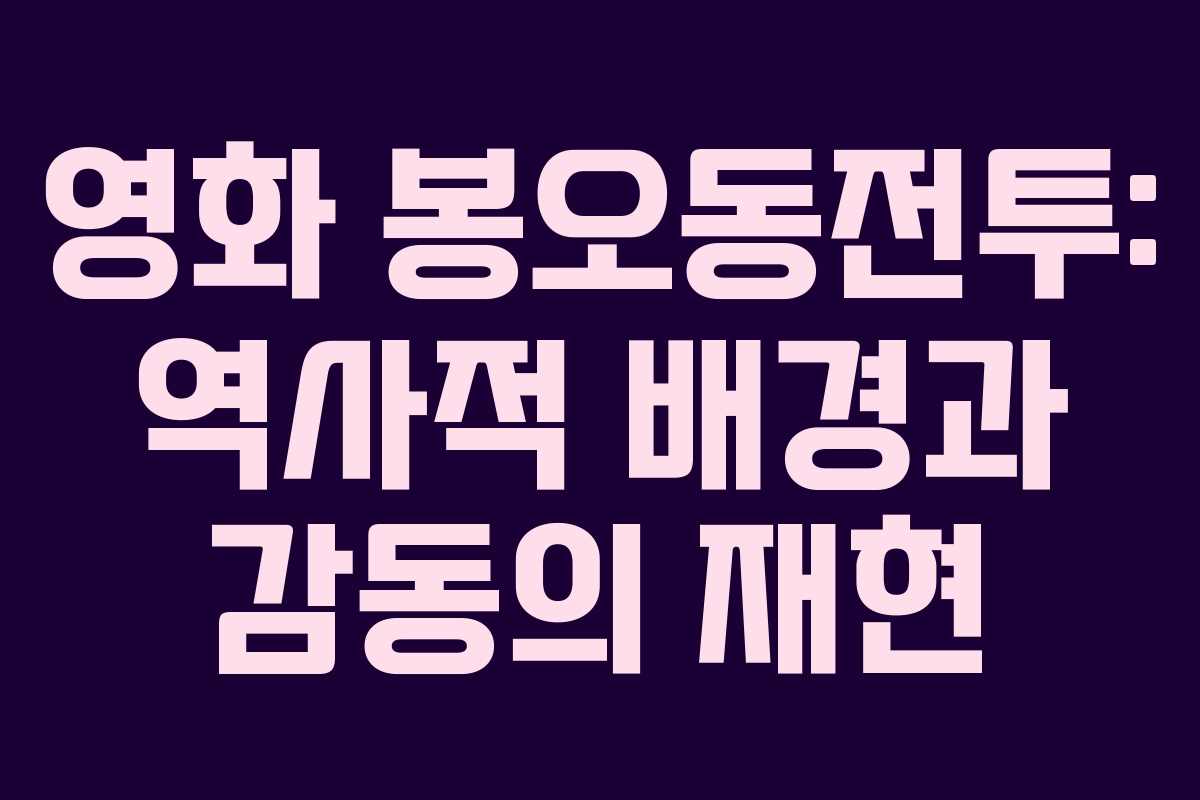 봉오동 전투는 단순한 전투의 이야기를 넘어, 한국의 독립을 위한 희생과 결단을 다룬 작품이다. 이 영화는 역사적 사실을 바탕으로 한 감동적인 스토리를 통해 관객들에게 깊은 여운을 남긴다. 영화는 역사적 사건을 재조명하며, 우리가 기억해야 할 중요한 메시지를 전달하고 있다.