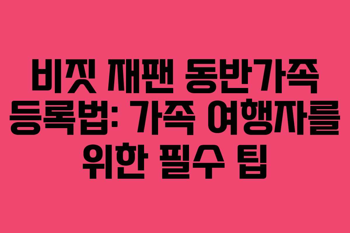 동반가족 등록을 위한 과정은 비교적 간단하지만, 모든 정보를 정확하게 입력해야 원활하게 진행됩니다. 아래는 동반가족 등록을 위한 주요 단계입니다.