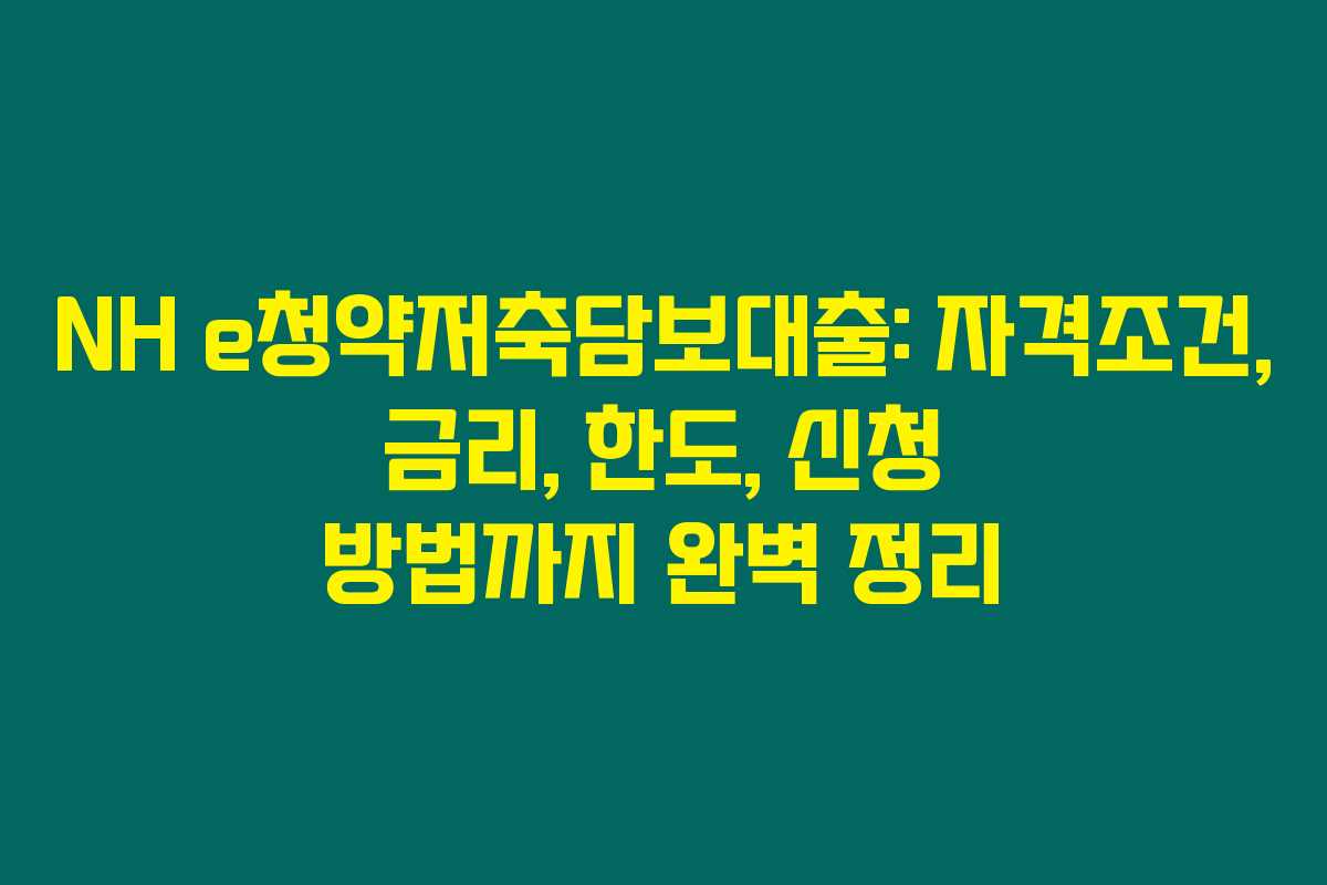 제가 알아본 바로는 NH e청약저축담보대출은 농협은행에서 제공하는 매우 유용한 상품이에요. 이 대출 상품은 주택청약종합저축을 운영 중인 고객들을 위해 특별히 설계되어 있어, 자금을 필요로 할 때 적절한 선택이 될 수 있답니다. 아래를 읽어보시면 NH e청약저축담보대출의 자격조건, 금리, 한도, 신청 방법에 대해 자세히 알아볼 수 있어요.