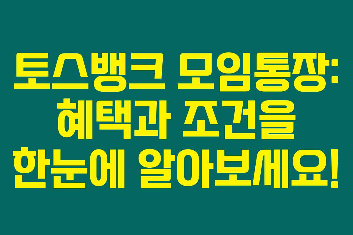 - 2. 토스뱅크 모임통장 혜택 및 조건