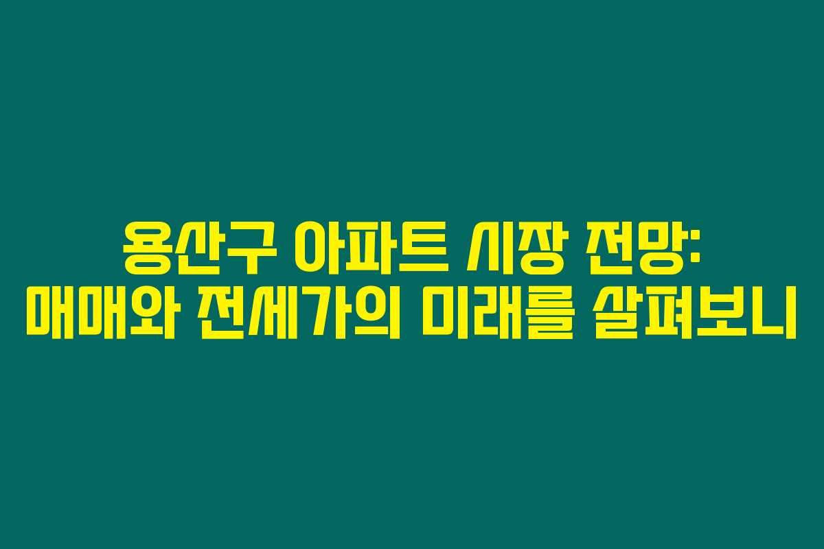 제가 직접 알아본 바로는, 용산구 아파트 시장은 다양한 개발 및 경제적 요인들로 인해 앞으로도 더욱 밝은 행보를 보일 것으로 기대됩니다. 용산국제업무지구와 재개발 프로젝트 같은 대규모 개발이 진행되고 있으며, 교통 편의성과 교육 인프라가 잘 갖춰져 있어 많은 투자자들이 용산구 아파트에 눈길을 끌고 있습니다. 아래를 읽어보시면 향후 용산구 아파트 시장의 매매가와 전세가가 어떻게 변동할지에 대한 인사이트를 얻으실 수 있을 것입니다.
