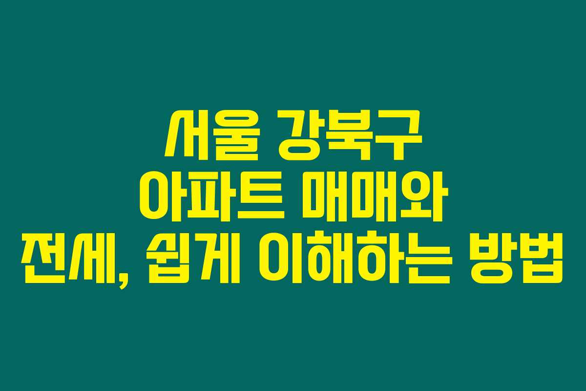 A1: 강북구의 아파트 매매는 꾸준히 증가하고 있으며, 신축 아파트와 저렴한 매물이 많아 첫 주택을 찾는 청년들에게 인기입니다.