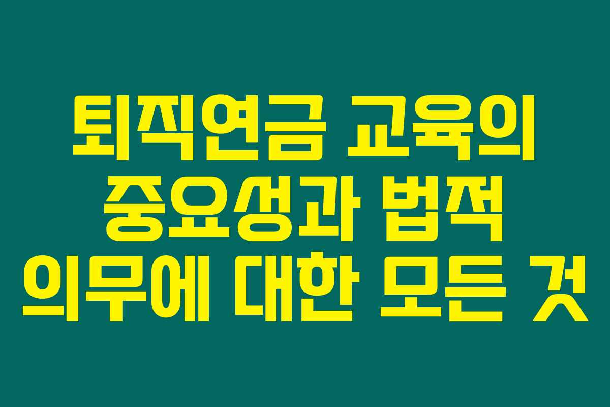 제가 직접 알아본 바로는 퇴직연금 교육은 근로자와 기업 모두에게 중요한 의미를 갖는 주제입니다. 이 교육은 퇴직급여 보장법에 따라 매년 필수적으로 이행해야 하며, 이를 통해 근로자는 퇴직 후 안정적인 삶을 준비할 수 있습니다. 하지만 이 교육을 미이수할 경우, 기업에는 최대 1천만 원의 과태료라는 부담이 생길 수 있습니다. 아래를 읽어보시면 퇴직연금 교육의 중요성과 법적 의무에 대해 더 깊이 이해하실 수 있습니다.