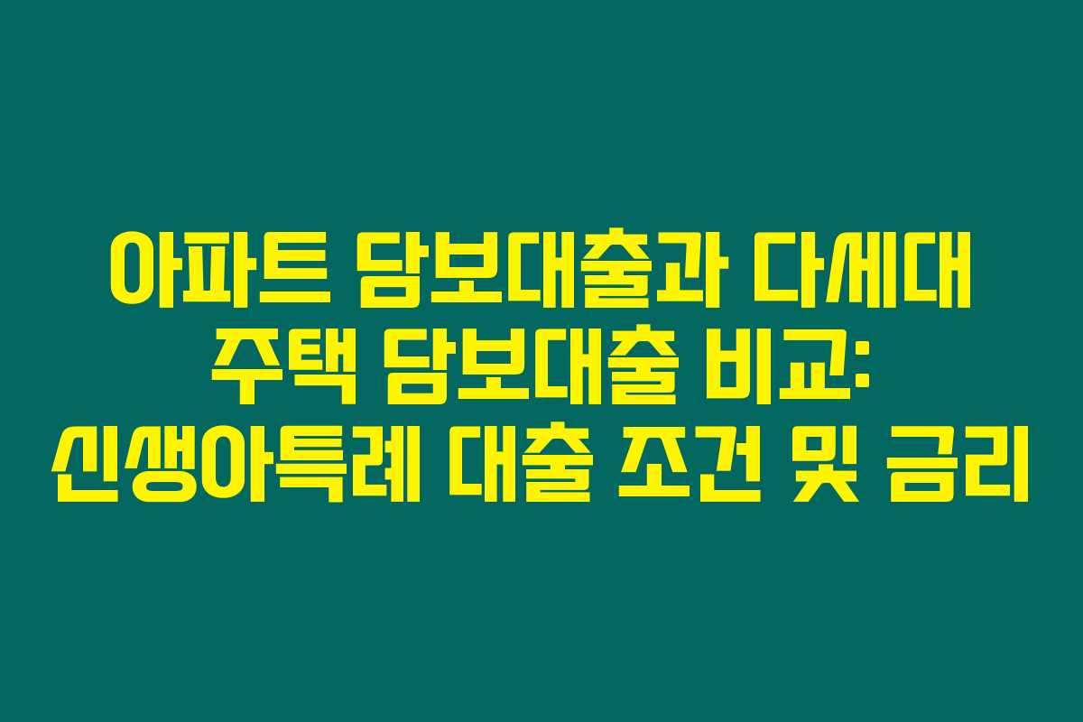 아파트 담보대출과 다세대 주택 담보대출은 각각의 특성이 있으니, 자신의 상황에 맞는 대출 상품을 선택하는 것이 중요합니다. 금융기관의 조건을 잘 비교하고, 신생아특례 조건을 잘 활용하여 유리한 대출을 얻길 바랍니다.