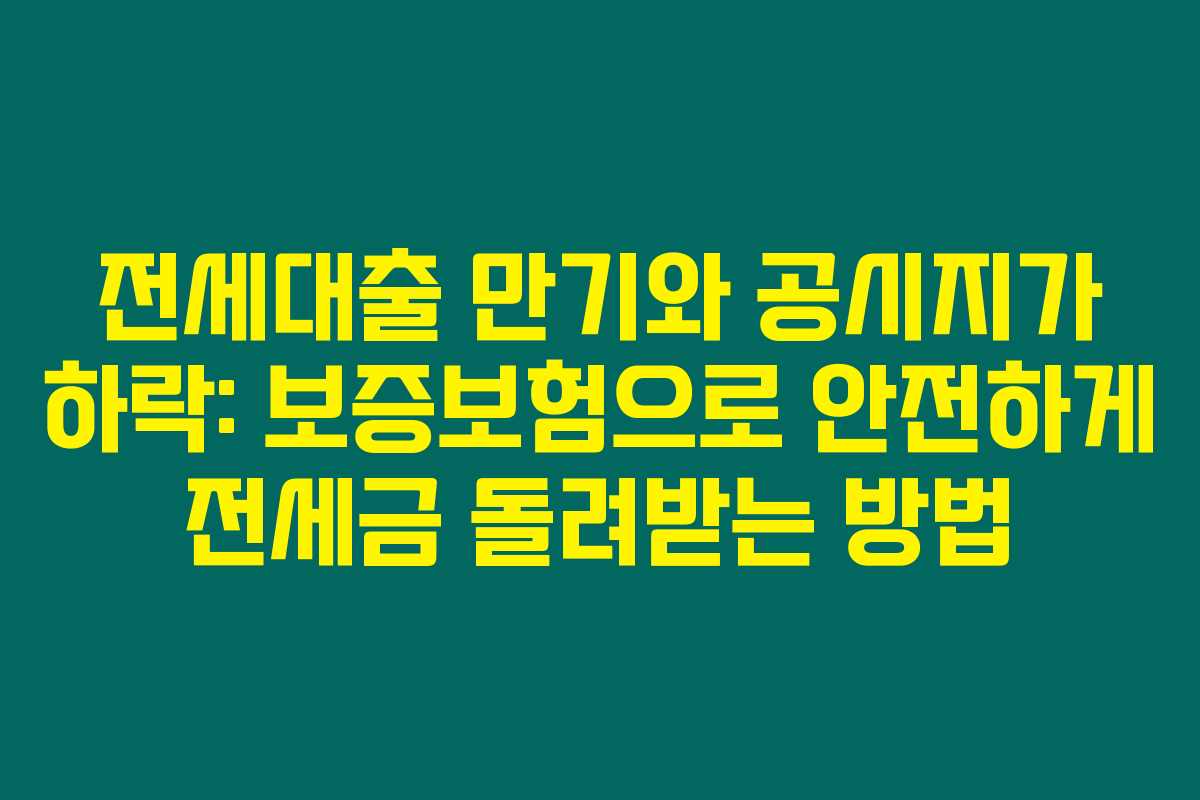 제가 알아본 바로는, 전세대출의 만 기를 맞이한 후 공시지가가 하락하게 되면 여러 가지 어려운 상황들이 발생할 수 있어요. 특히, 보증보험을 통해 전세금을 돌려받는 방법과 절차를 이해하면, 이러한 문제를 효과적으로 해결할 수 있습니다. 아래를 읽어보시면 전세대출과 공시지가의 관계, 공시지가 하락의 문제점, 보증보험을 통해 전세금을 돌려받는 과정 등을 자세히 알 수 있습니다.
