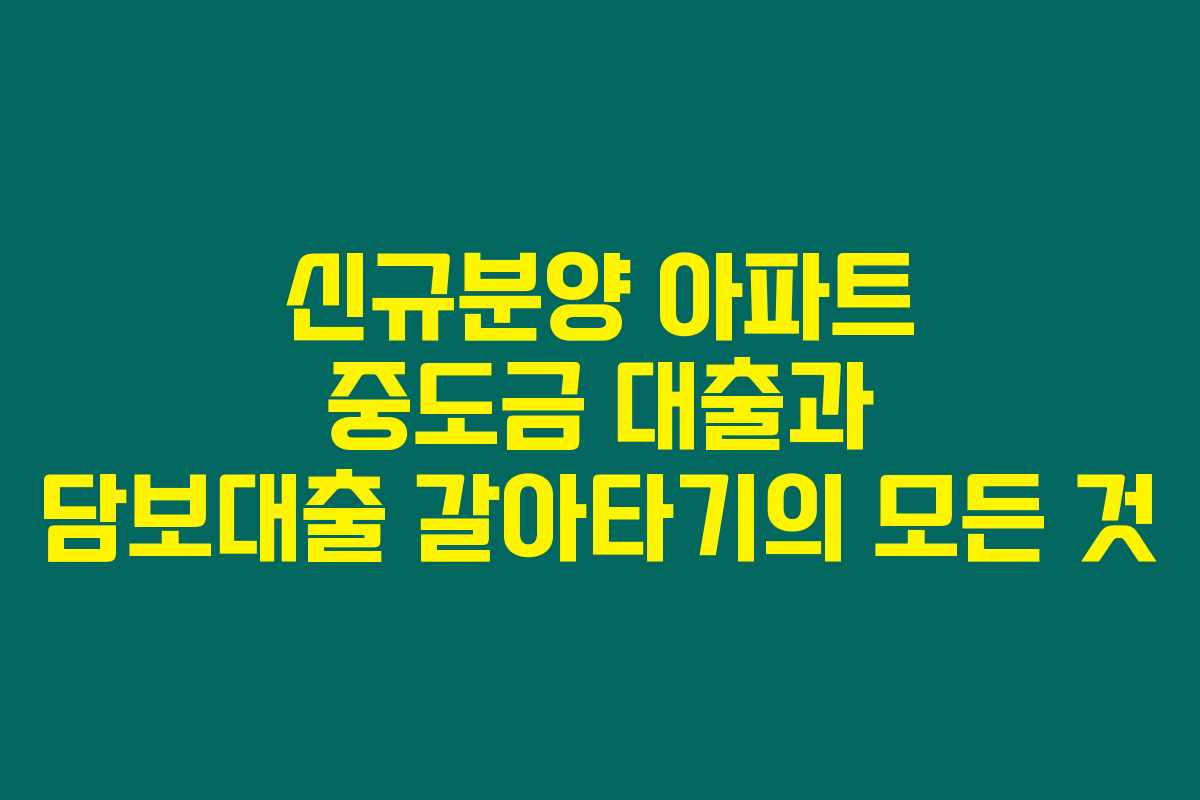 제가 직접 리서치한 바로는, 신규분양 아파트 구매 시 중도금 대출과 담보대출 갈아타기는 재정 관리에 있어서 매우 중요한 요소입니다. 중도금 대출을 적절히 활용하고 담보대출을 갈아타는 과정을 통해 금융 부담을 줄이고 유리한 조건을 확보할 수 있다고 하네요. 아래를 읽어보시면 중도금 대출과 담보대출 갈아타기의 핵심 정보와 유익한 팁을 알 수 있습니다.