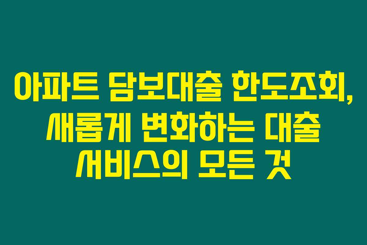 아파트 담보대출 한도조회, 새롭게 변화하는 대출 서비스의 모든 것
