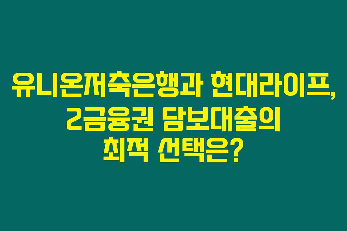유니온저축은행과 현대라이프, 2금융권 담보대출의 최적 선택은?