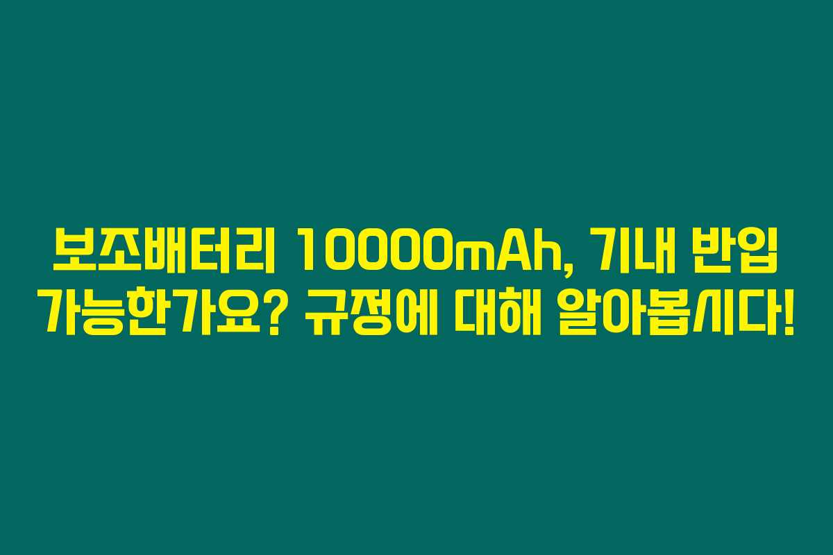 제가 직접 경험해본 바로는, 여행에서 보조배터리는 정말 중요한 아이템이에요. 그런데 많은 분들이 ‘보조배터리 10000mAh는 기내 반입이 가능한지’ 궁금해 하시죠. 아래를 읽어보시면 기내 반입 규정과 보조배터리를 걱정 없이 소지할 수 있는 방법에 대해 알아보실 수 있을 거예요.