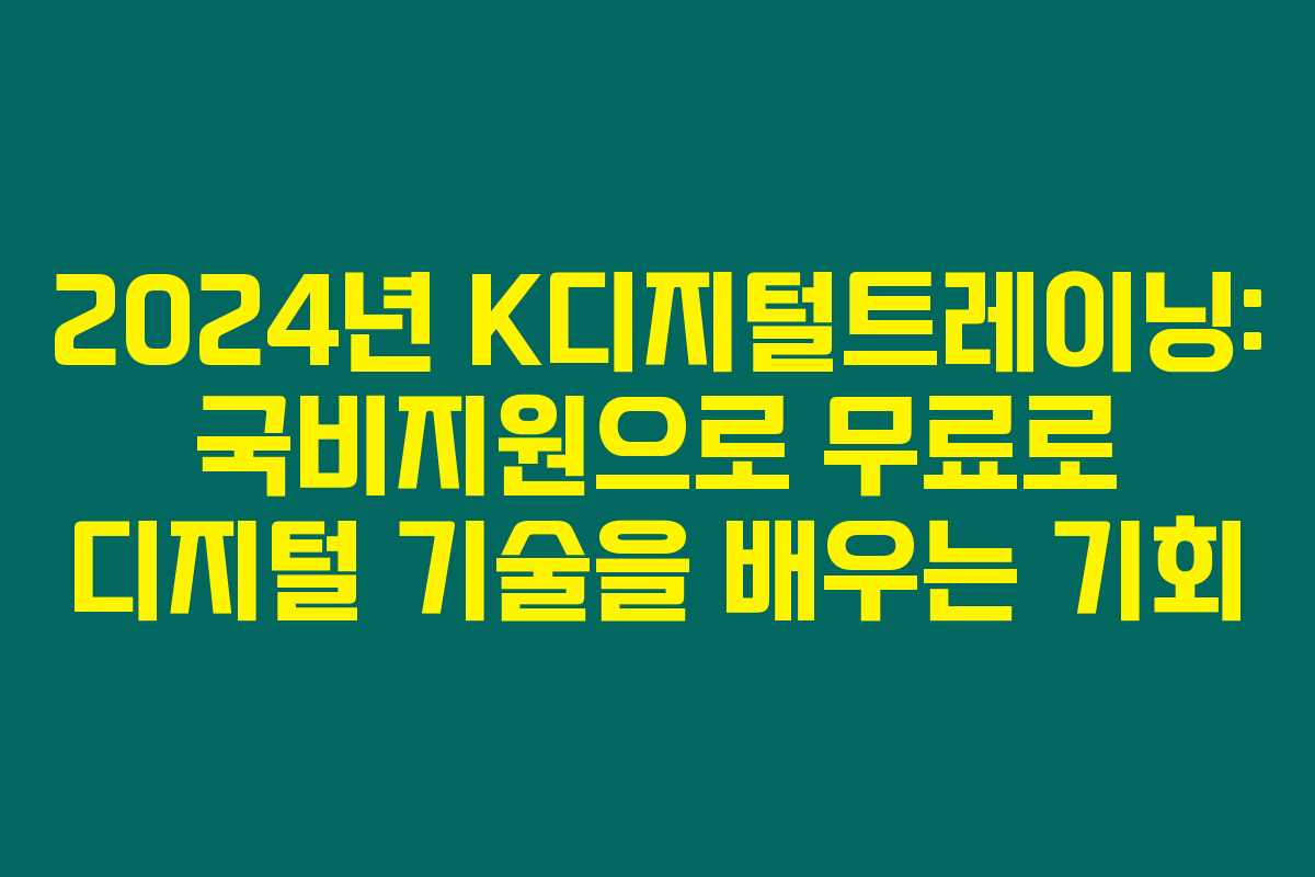제가 직접 경험해본 결과로는, 2024년 K디지털트레이닝 프로그램은 최신 디지털 기술을 배우고자 하는 모든 이들에게 매우 유익한 기회입니다. 이 교육 과정은 정부의 국비 지원으로 제공되며, 경제적인 부담 없이 많은 분들이 참여할 수 있다는 장점이 있습니다. 아래를 읽어보시면 K디지털트레이닝의 다양한 혜택과 교육 내용을 자세히 이해하실 수 있을 거예요.