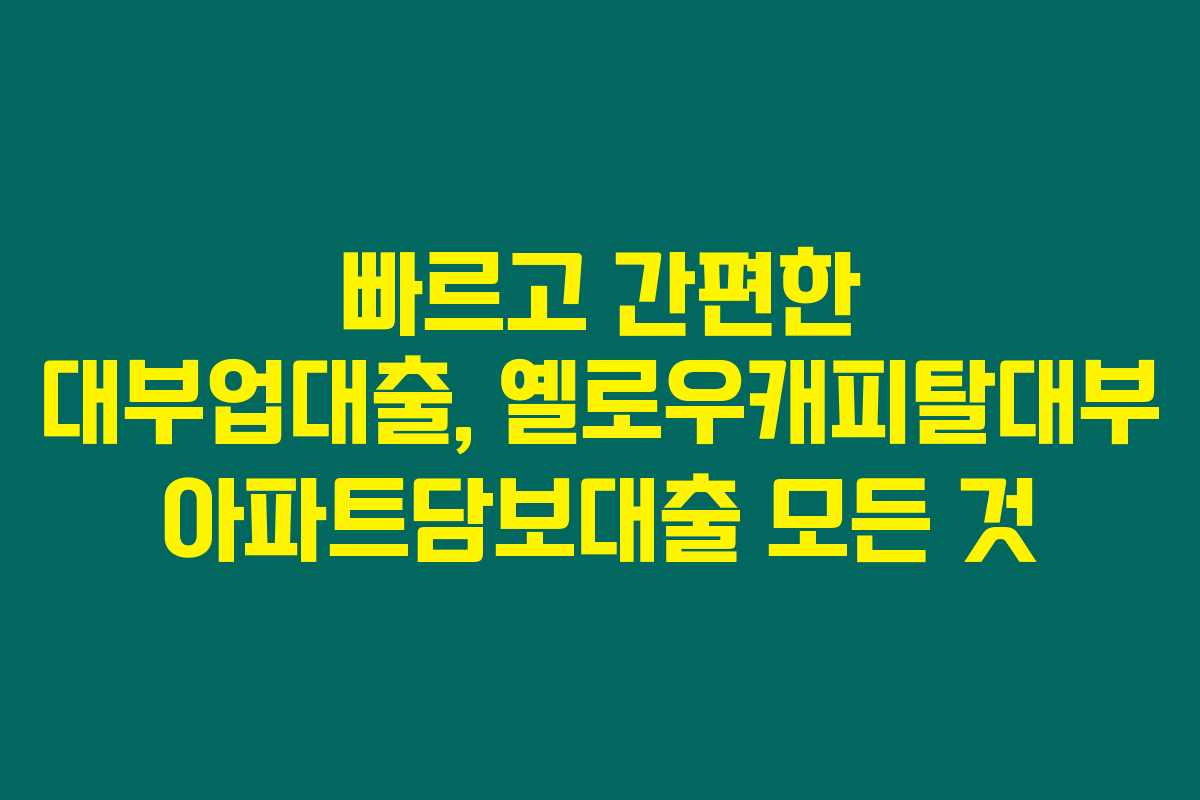 대부업대출 옐로우캐피탈대부 아파트담보대출은 아파트를 보유한 고객에게 최적화된 대출 상품으로, 빠른 자금 조달과 유연한 상환 방법을 제공합니다.