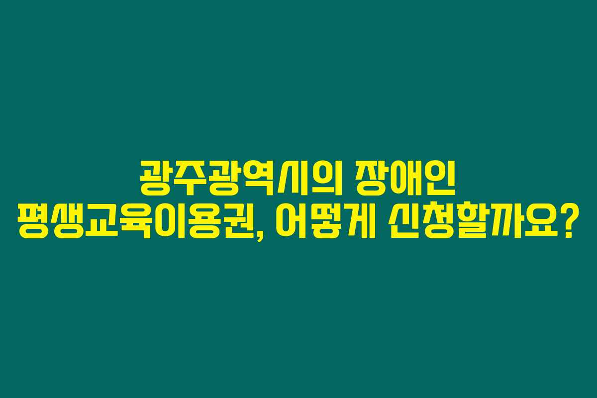 제가 직접 알아본 바로는, 광주광역시는 장애인을 위한 평생교육 참여를 지원하는 다양한 프로그램을 운영하고 있으며, 그 중에서도 특히 ‘장애인 평생교육이용권’ 제도가 많은 도움을 주고 있습니다. 이 제도는 장애인의 학습권 보호를 통해 스스로의 역량을 강화하고, 삶의 질을 향상시킬 수 있도록 돕는 것을 목표로 하고 있죠. 아래를 읽어보시면 이 제도에 대한 자세한 내용과 신청 방법에 대해 안내드리겠습니다.