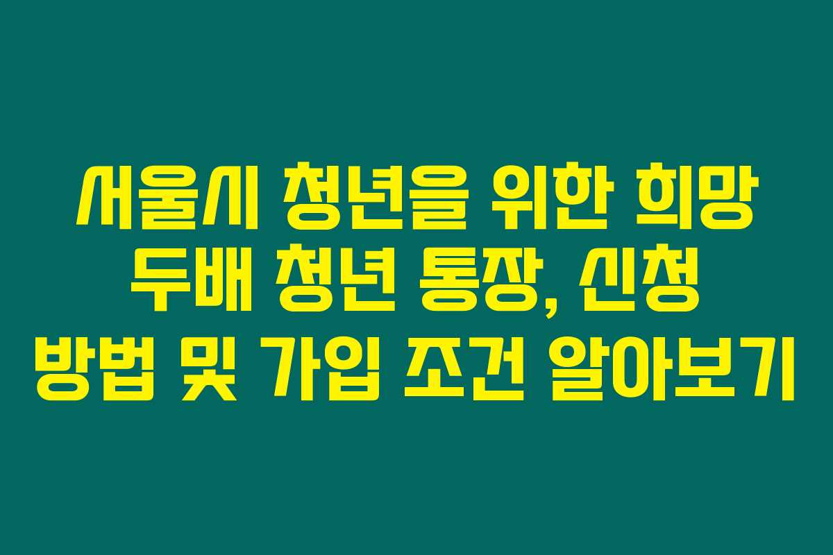 제가 직접 체크해본 바로는 서울시에서 제공하는 희망 두배 청년 통장은 청년들에게 장기적인 재정 안정과 경제적 독립을 위한 훌륭한 지원 방안이에요. 이 제도를 통해 청년들은 저축을 통해 자산을 형성하고, 미래를 위한 투자 및 사업 자금을 마련할 수 있습니다. 아래를 읽어보시면 희망 두배 청년 통장 신청 방법과 가입 조건에 대해 자세히 알아보실 수 있습니다.