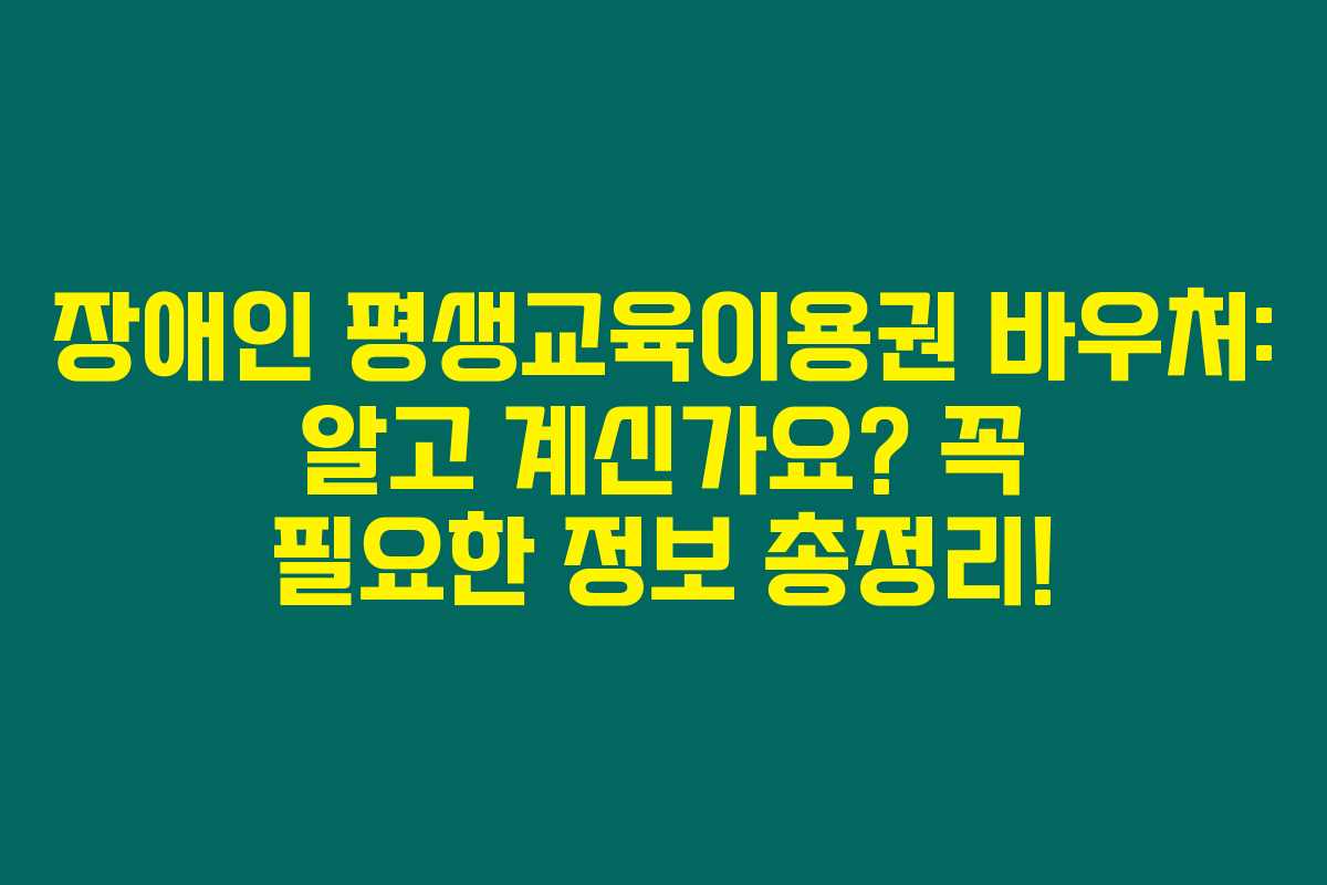 장애인 평생교육이용권 바우처 신청은 장애인 분들이 평생교육에 참여할 수 있도록 하는 좋은 제도랍니다. 여러분의 소중한 기회를 놓치지 않도록, 위의 정보들을 잘 활용하시길 바랍니다.