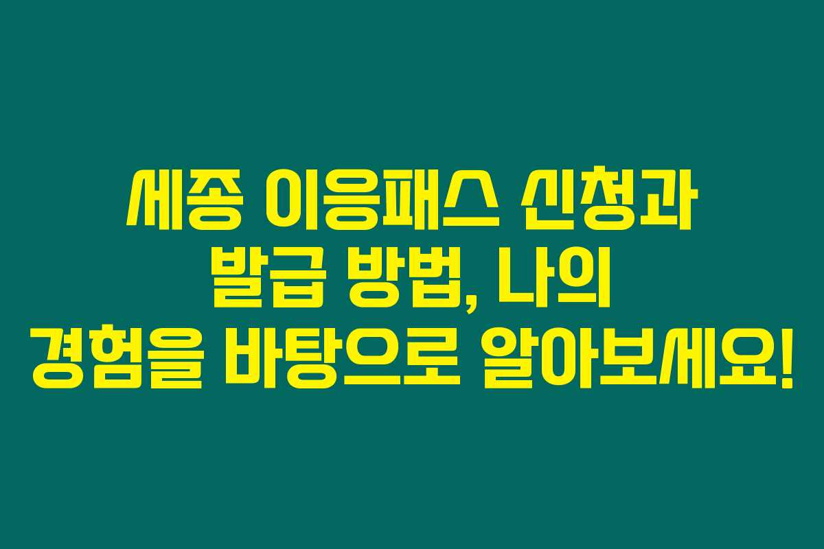 세종 이응패스 신청과 발급 방법, 나의 경험을 바탕으로 알아보세요!
