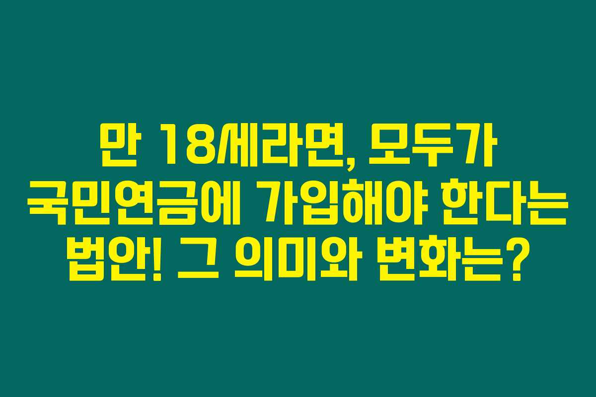 제가 직접 리서치해본 바로는, 만 18세 국민연금 자동가입 법안이 가져올 변화는 상당히 큽니다. 이 법안은 한국 청년들이 안정적인 노후를 준비하는데 큰 역할을 할 것으로 기대되지만, 그 과정에서 고민할 점도 분명히 존재합니다. 아래를 읽어보시면, 이 법안의 주요 내용과 기대 효과, 반대 의견 등을 깊이 있게 이해할 수 있을 것입니다.