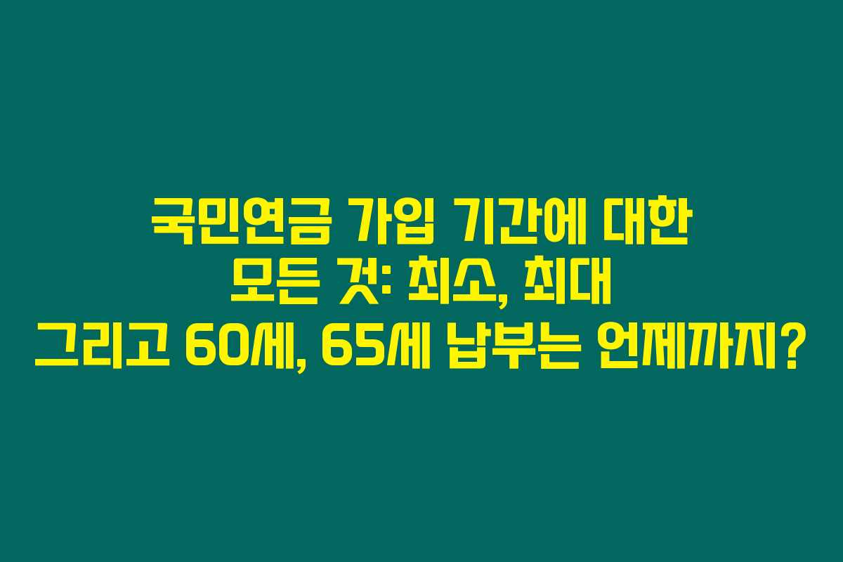 제가 직접 리서치한 바로는 국민연금 가입 기간에 대한 정보는 여러분이 아끼는 노후를 준비하는 데 중요한 요소랍니다. 국민연금은 우리의 노후를 지탱해주는 든든한 지원 체계인데요, 최소 및 최대 가입 기간과 60세, 65세까지 납부해야 하는 사항들에 대해 살펴보겠습니다. 아래를 읽어보시면 국민연금의 가입 기간을 제대로 이해할 수 있을 거예요.