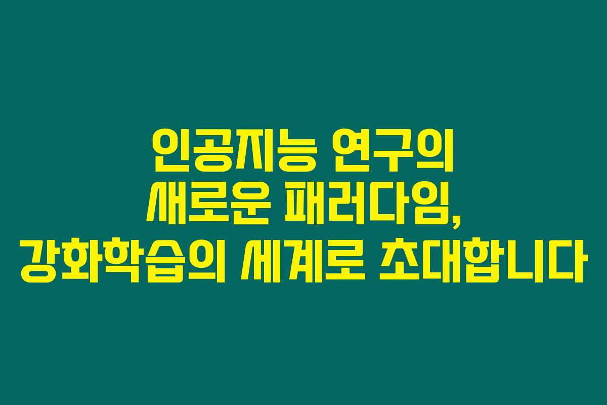인공지능 연구의 새로운 패러다임, 강화학습의 세계로 초대합니다