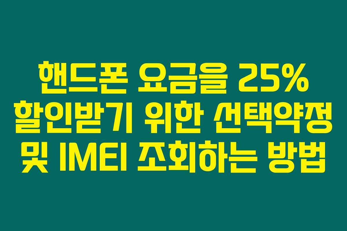 제가 직접 체크해본 바로는, 핸드폰 요금 부담을 줄이기 위해 25% 할인을 받을 수 있는 선택약정이 매우 유용하답니다. 많은 분들이 이 할인 혜택을 모르고 지나치고 계신데요, 간단하게 내 핸드폰이 조건에 맞는지 확인하고, 방법도 알게 된다면 금액적인 혜택이 쏠쏠하겠지요. 아래를 읽어보시면, 제가 경험한 IMEI 조회 방법과 선택약정 신청과정에 대해 자세히 안내해드리겠습니다.