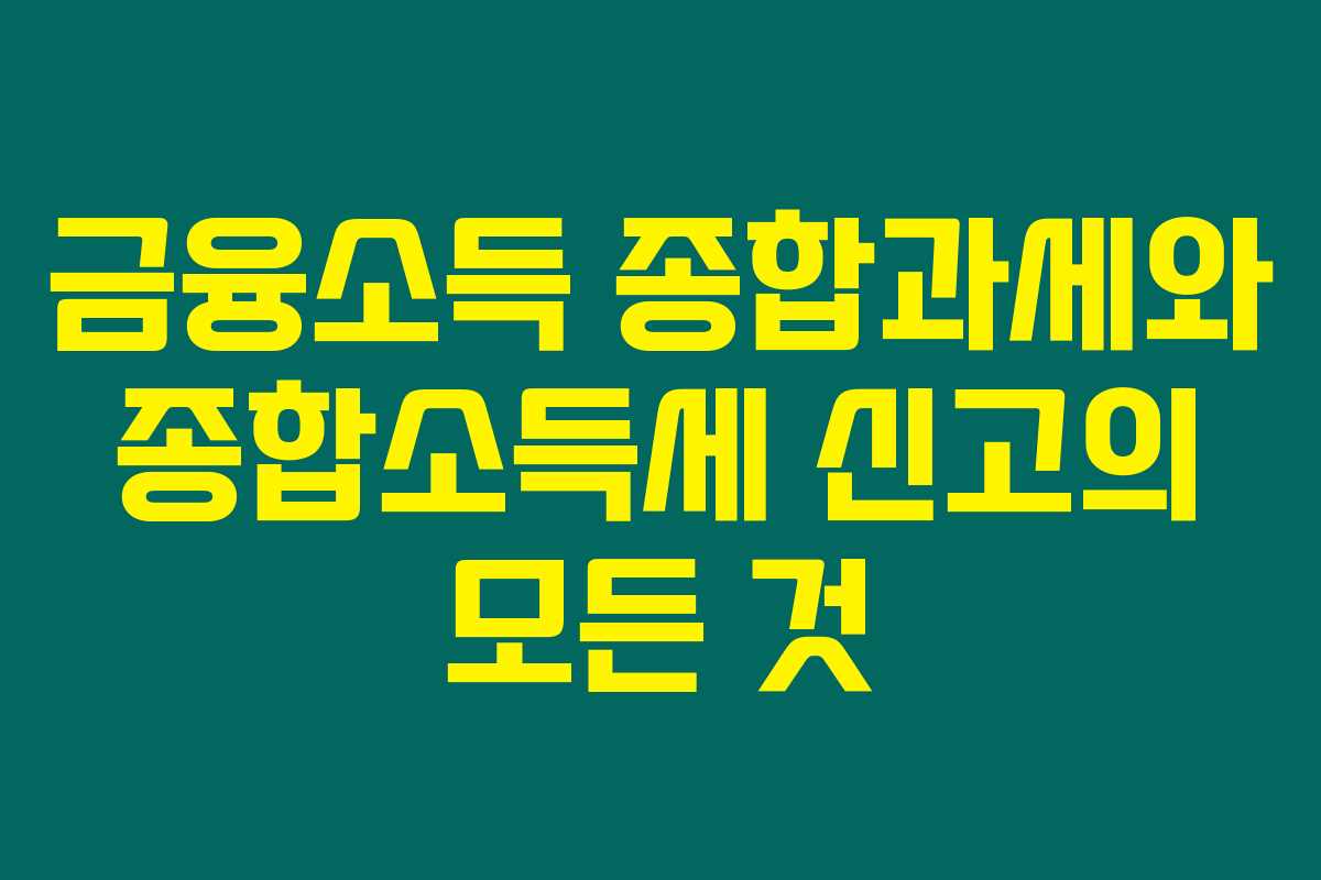 금융소득 종합과세와 종합소득세 신고의 모든 것